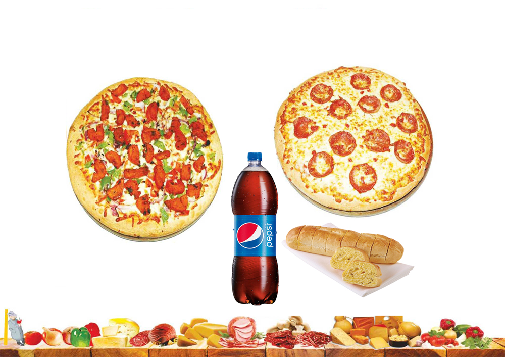 Mozzarella cheese,Tamarind sauce, garlic, oregano, red onion, olives, fresh tomato, jalapenos green chillies, capsicum, Panner cheese.