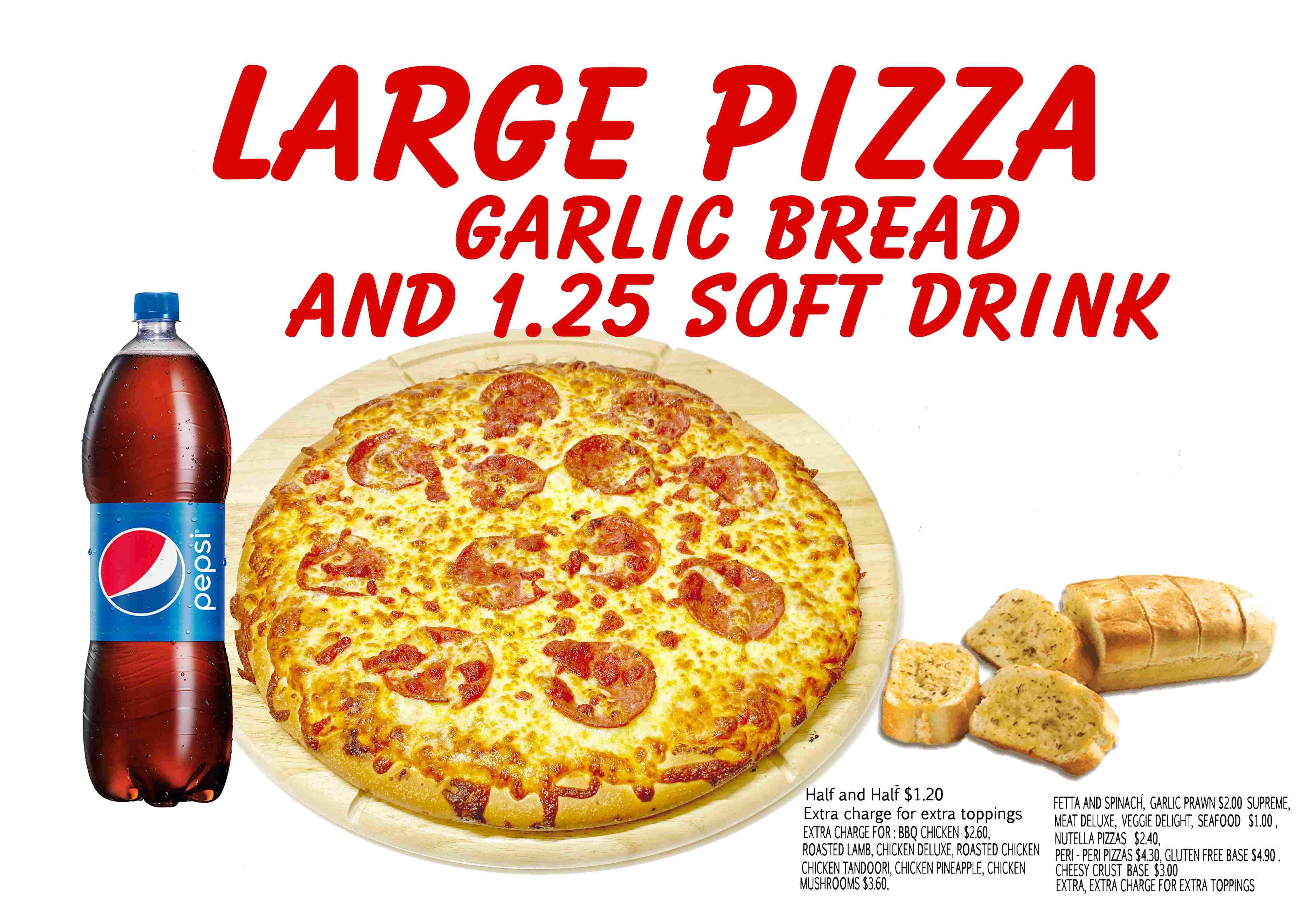 Tomato sauce, cheese, roasted lamb, capsicums, onion, BBQ sauce or garlic sauce.
