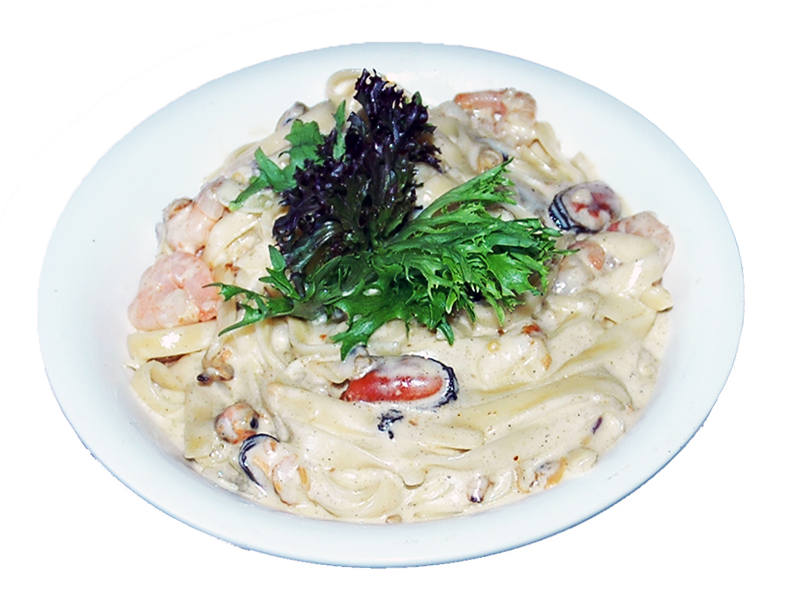 Mixed seafood, onions, garlic, cream sauce, parmesan.