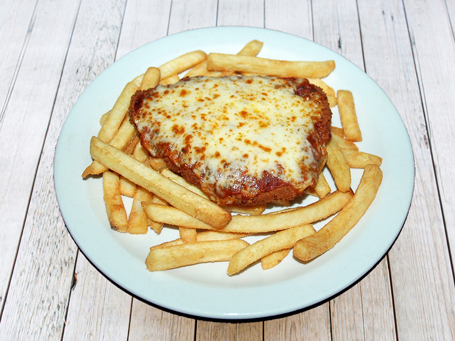 VEAL.SHNITZEL PARMIGIANA+CHIPS$22×