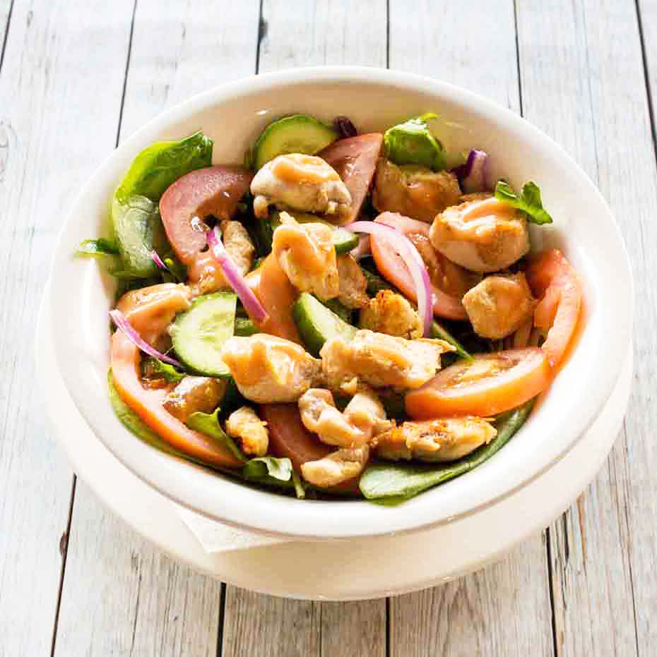 CHICKEN.SCHN-GERMAN+CHIPS+SALAD$23Chicken schnitzel, topped with creamy mushroom and capsicum sauce, served with chips and Salad×